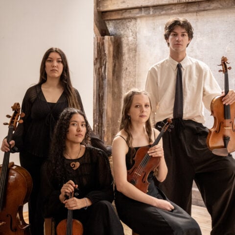 The Jupiter String Quartet is a particularly intimate group, consisting of violinists Mélanie Clapiès and Meg Freivogel McDonough, violist Liz Freivogel (Meg’s sister), and cellist Daniel McDonough (Meg’s husband). Founded in 2001, the ensemble is firmly established as an important voice in the world of chamber music, and exudes an energy that is at once friendly, knowledgeable, and adventurous. The New Yorker states, “The Jupiter String Quartet, an ensemble of eloquent intensity, has matured into one of the mainstays of the American chamber-music scene.”